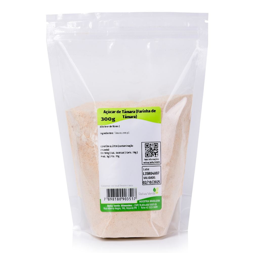 O Açúcar de Tâmara, ou Farinha de Tâmara, é 100% natural e feito apenas de tâmaras moídas, sem adição de açúcares, conservantes ou aditivos. Rico em fibras, minerais e com o sabor naturalmente adocicado da fruta, é uma opção mais nutritiva e equilibrada para substituir o açúcar branco em diversas preparações.