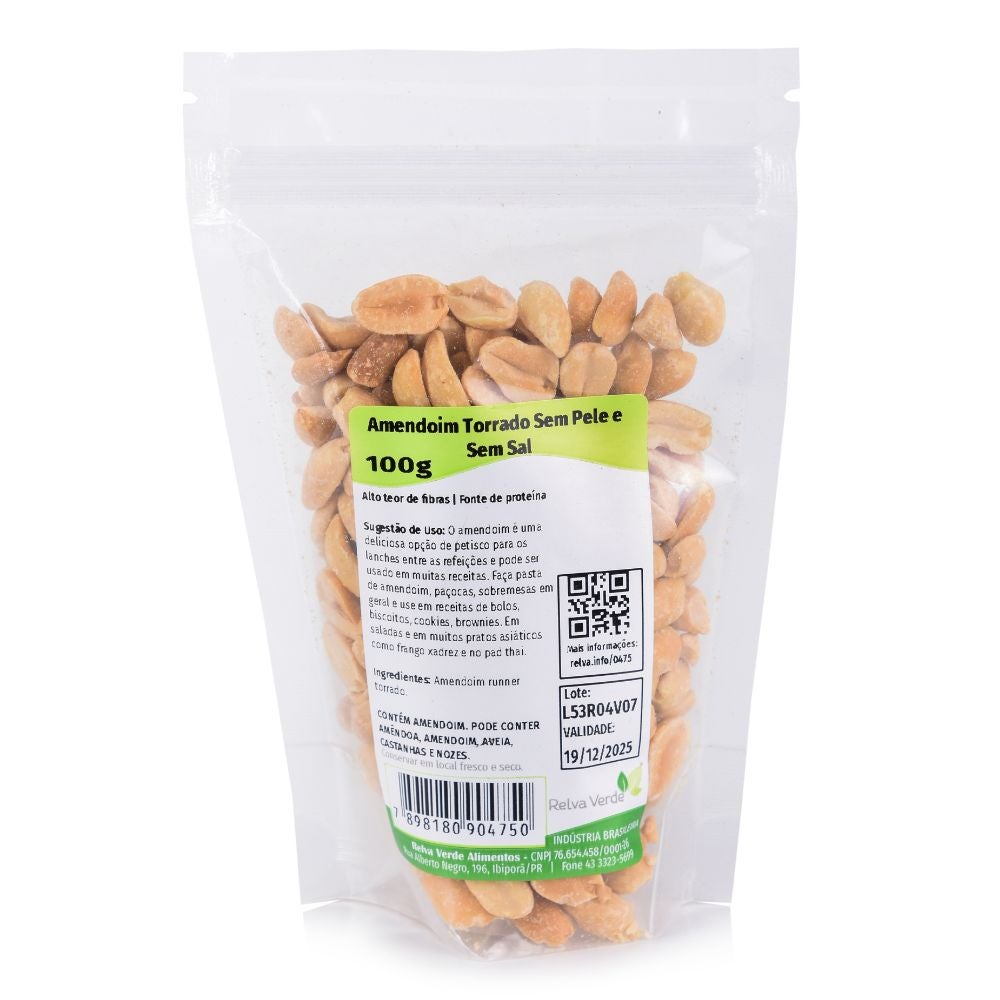 Amendoim Torrado Sem Pele e Sem Sal 100g