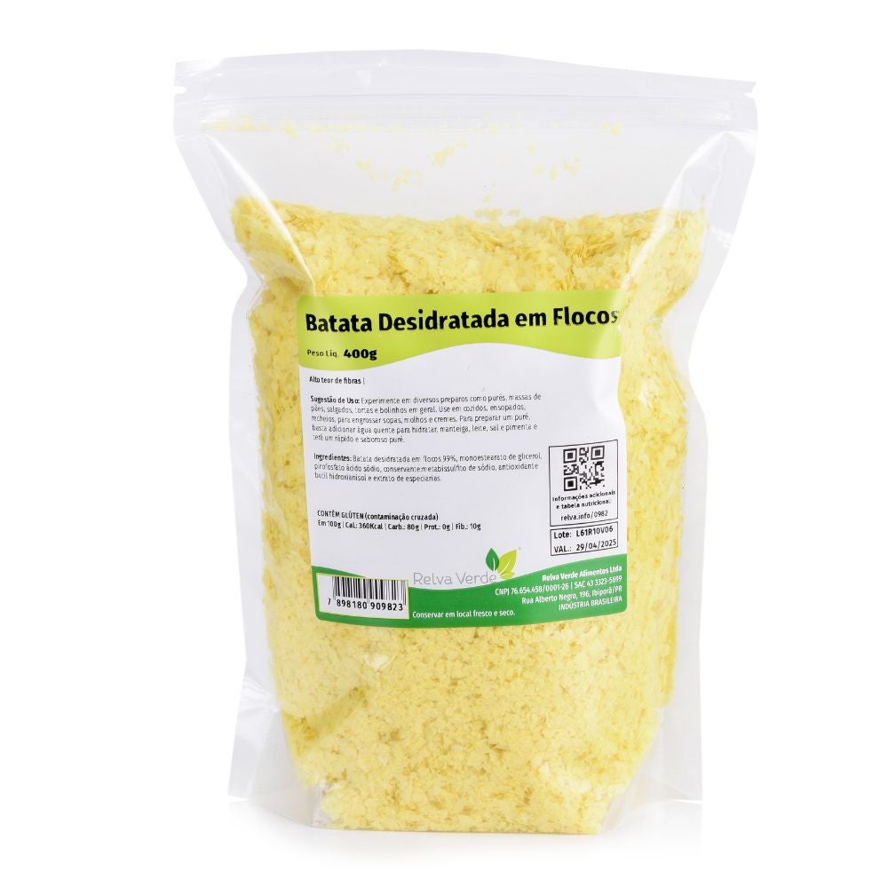 A Batata Desidratada em Flocos é um excelente opção, feito a partir de batatas frescas que foram cozidas, trituradas e que passam por um processo de retirada da água, concentrando ainda mais o seu sabor suave e aumentando sua vida útil. As versões desidratadas dos produtos podem ser utilizadas em todas as preparações culinárias em substituição ao produto fresco.