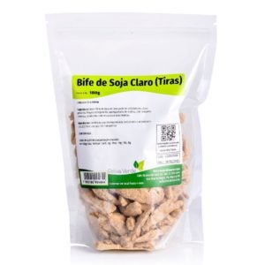 O Bife de Soja, também conhecido como Carne de Soja e Proteína Texturizada de Soja (PTS), é uma forma muito utilizada pelos vegetarianos e veganos para substituir a carne nas mais diversas receitas. O Bife de Soja absorve os temperos utilizados no preparo. Tempere da sua forma e tenha resultados deliciosos! Essa opção é prática pois já vem em Tiras, ótima para diversas receitas com o clássico strogonoff.