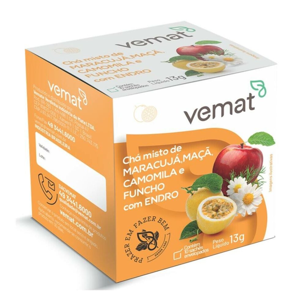 Chá Misto Maracujá, Maçã, Camomila e Funcho com Endro Vemat 10 Sachês