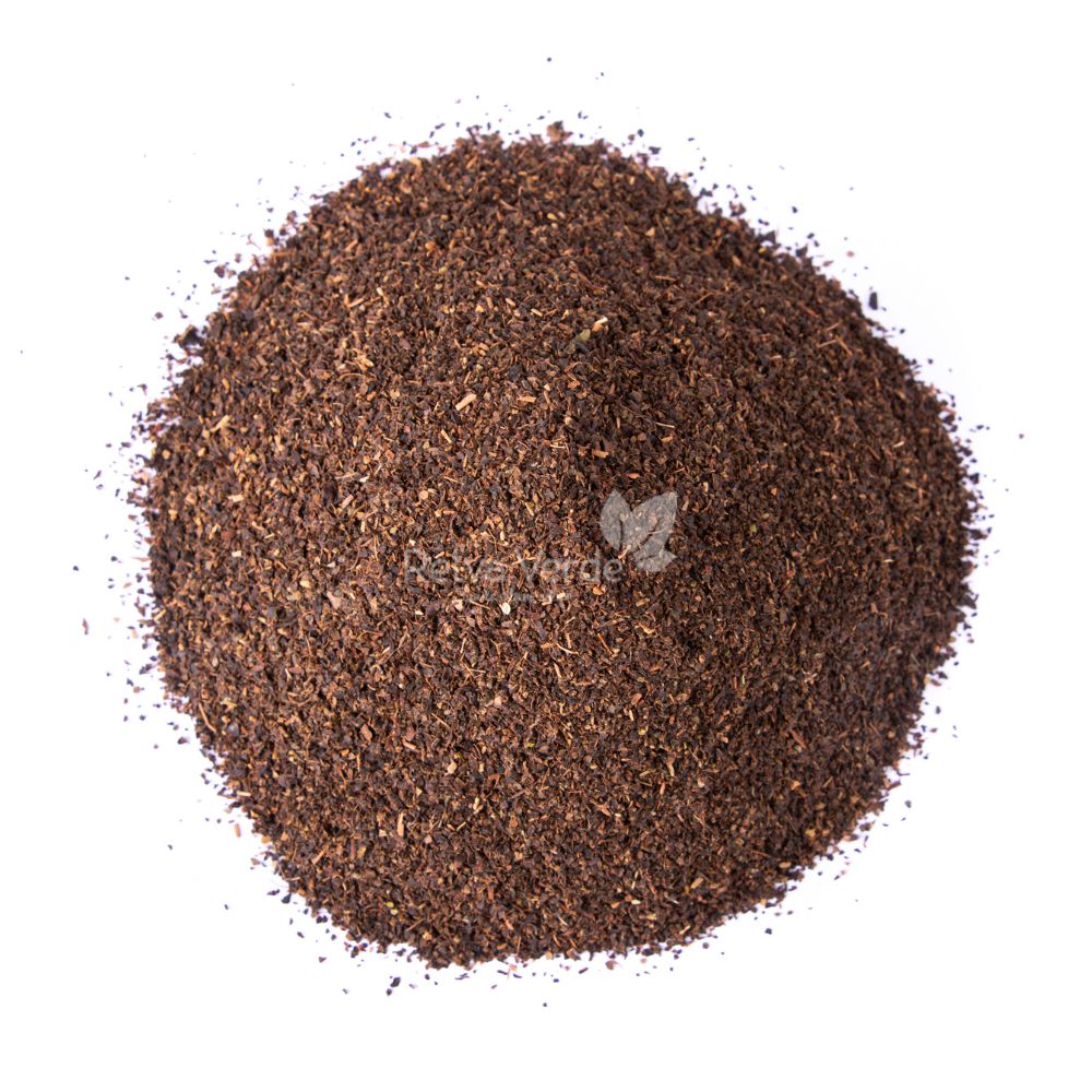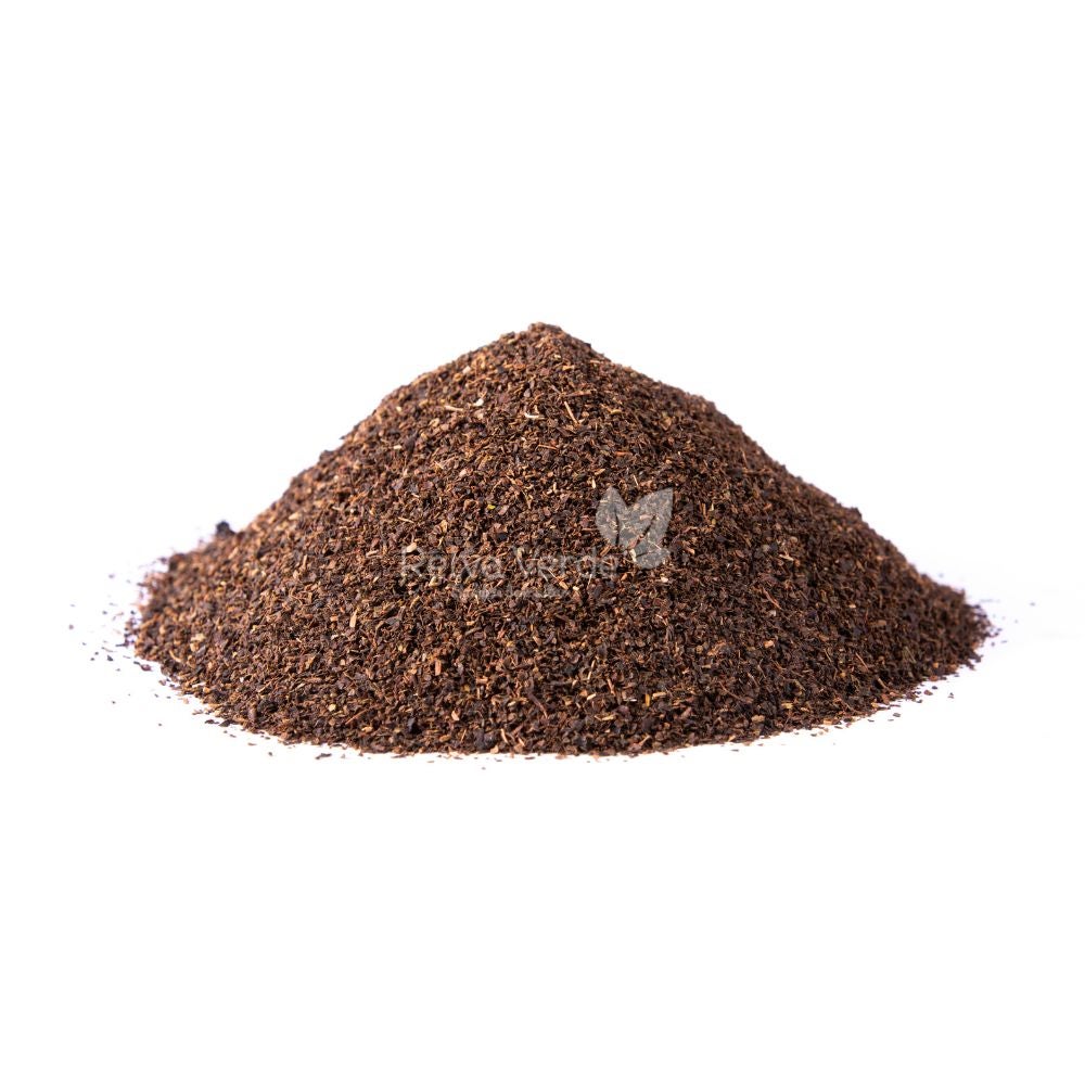 folhas e talos rasurados de Chá Preto (Camellia sinensis).
