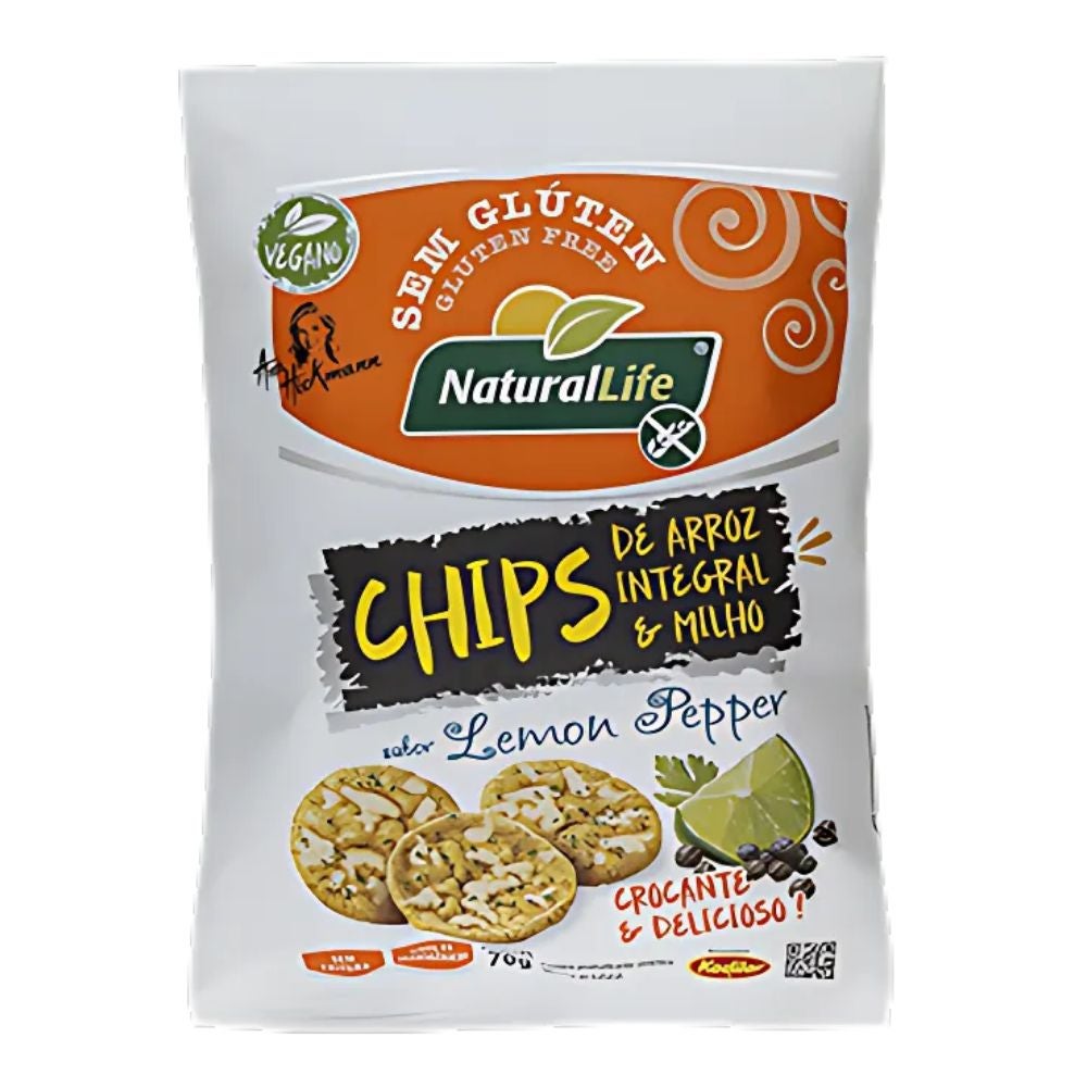 Chips de Arroz Integral e Milho Sabor Lemon Pepper Natural Life 70g