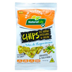 O Chips da Natural Life é feito de Milho, arroz integral, lentilha, ervilha, grão-de-bico e feijão branco, naturalmente livre de glúten. Com textura crocante e saborosa. Não é frito e nem assado, é uma inovação de snack mais natural e saudável. Sabor Mix de Leguminosas.