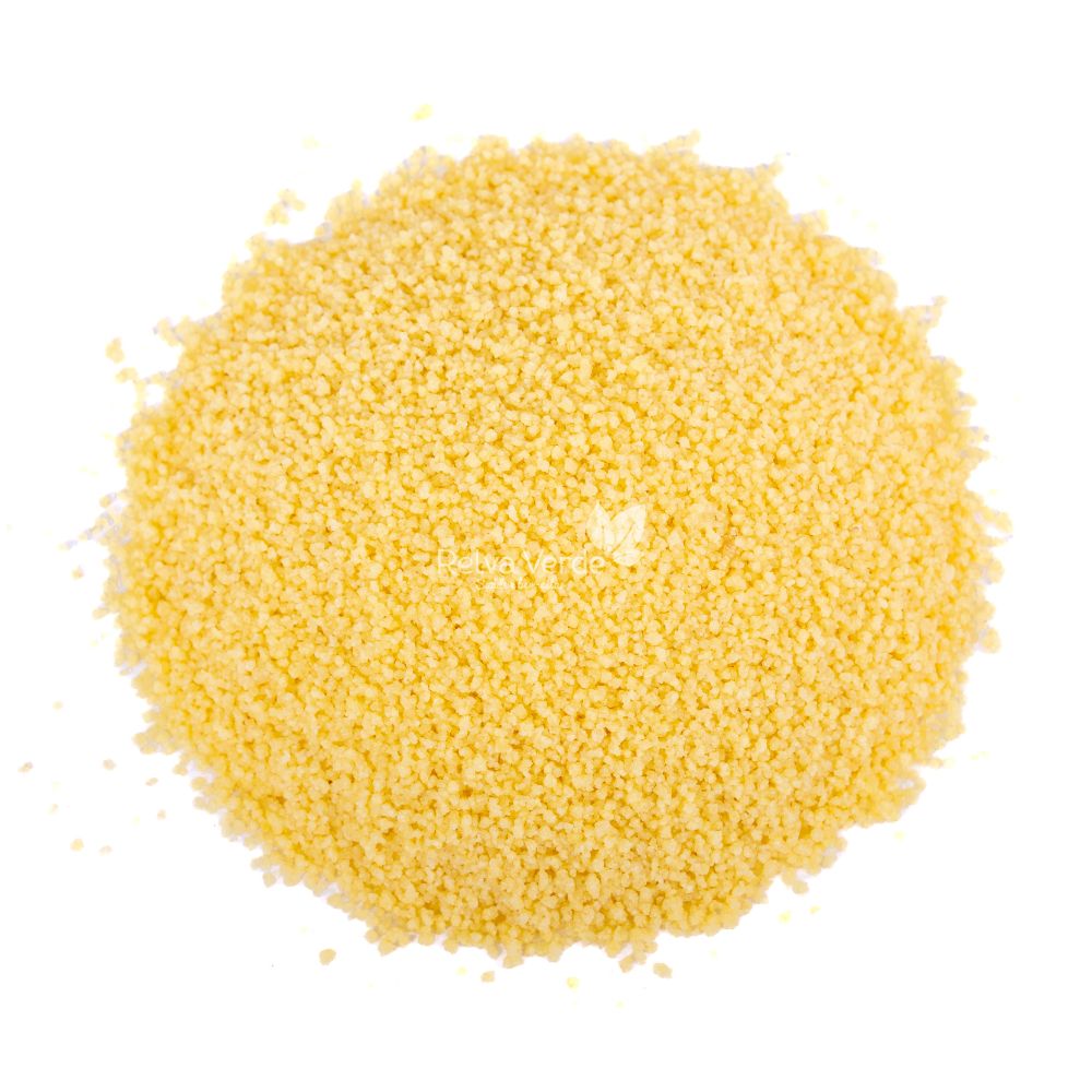 O Cuscuz Marroquino (também escrito como Couscous) possui origem no Oriente Médio e é feita de sêmola de trigo durum, um tipo de trigo que depois de moído produz uma semolina de alta qualidade. É fonte de Selênio, Vitamina A e Vitamina B1, e é uma boa fonte de carboidratos e proteína vegetal. Originalmente o Couscous é servido com um ensopado de legumes ou carnes, mas em terras brasileiras é servido com os mais diversos caldos e acompanhamentos, pode soltar a imaginação!