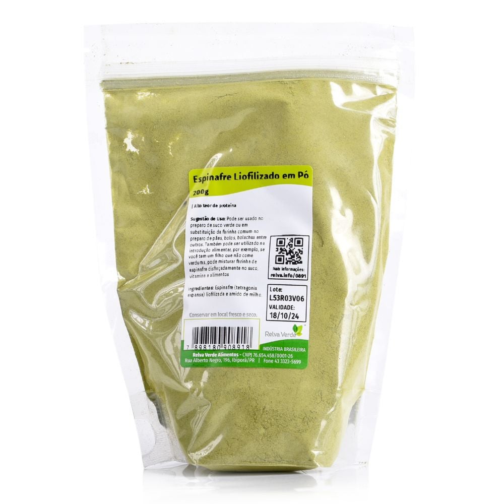 O processo de liofilização do espinafre acontece através de uma moderna técnica de secagem a frio de alimentos, sem que este perca qualquer propriedade do produto original, como sabor, odor, cor, valores nutricionais e vitamínicos. Além de preservar todas as características nutricionais do alimento, a liofilização faz com que o alimento não se deteriore. O espinafre é desidratado em baixa temperatura, garantindo que o produto conserve suas propriedades, antes de ser moído num pó fino. O espinafre liofilizado em pó é mais econômico e prático.