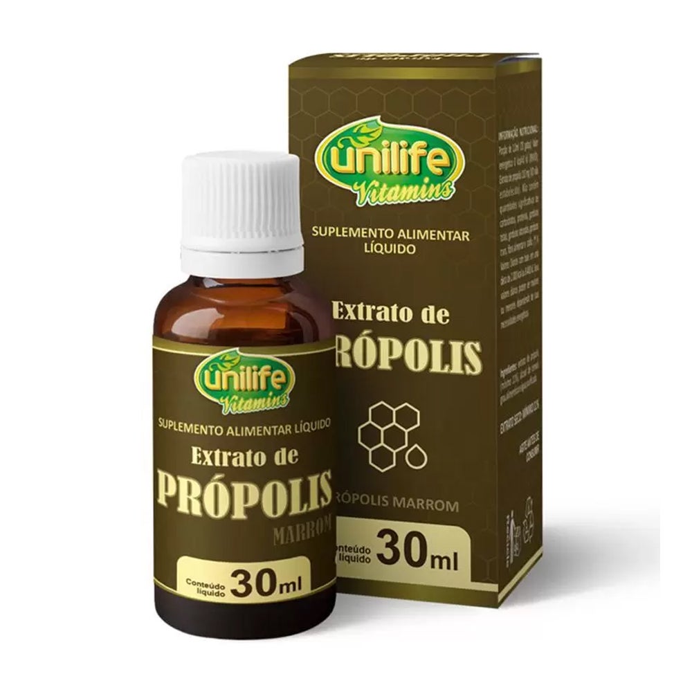 O Extrato de Própolis Marrom da Unilife é produzido a partir de própolis marrom com concentração mínima de 11%, em base de álcool de cereais grau alimentício e água purificada. É conhecido por seu uso tradicional e pode ser adicionado a bebidas como água, suco ou chá. Sugere-se a ingestão de 20 gotas ao dia, diluídas em meio copo do líquido de sua preferência.