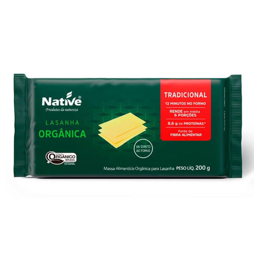 A Massa de Lasanha da Native é feita 100% com ingredientes orgânicos, apenas farinha de trigo e cúrcuma. Já está pronta para ir direto ao forno, sem necessidade de cozinhar antes. Cada pacote de massa com 200g rende em média seis porções de lasanha pronta. Além de não precisar levar ao fogo antes, leva apenas 12 minutos no forno para cozinhar.