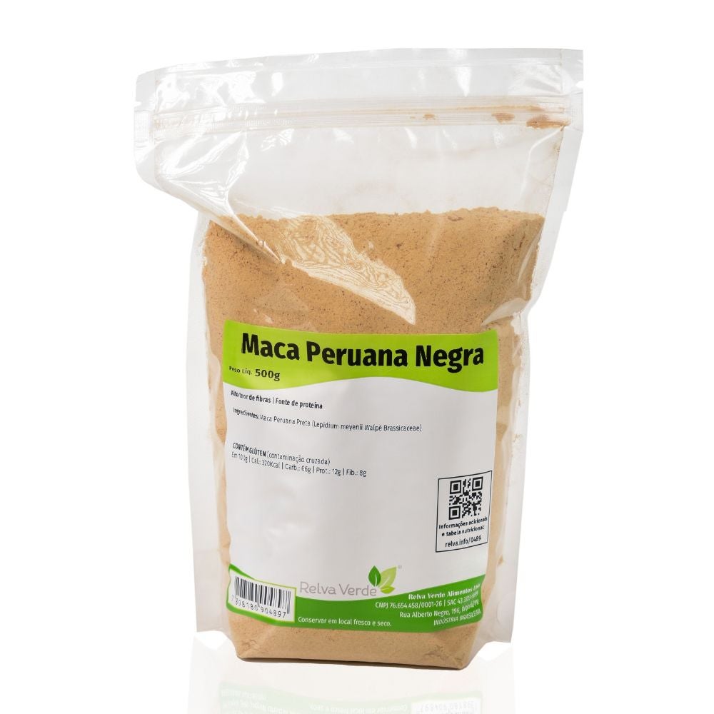 A maca peruana negra é a raiz de uma planta cultivada nas regiões elevadas da Cordilheira dos Andes. Após a colheita, passa por um processo de secagem e moagem, sendo transformada em pó/farinha, utilizado como complemento alimentar devido às suas propriedades nutricionais. Ela se diferencia da maca peruana amarela, a variedade mais conhecida, principalmente pela cor da raiz e pela concentração de alguns compostos naturalmente presentes na planta, o que faz com que cada tipo de maca seja escolhido conforme a preferência e o objetivo de consumo.