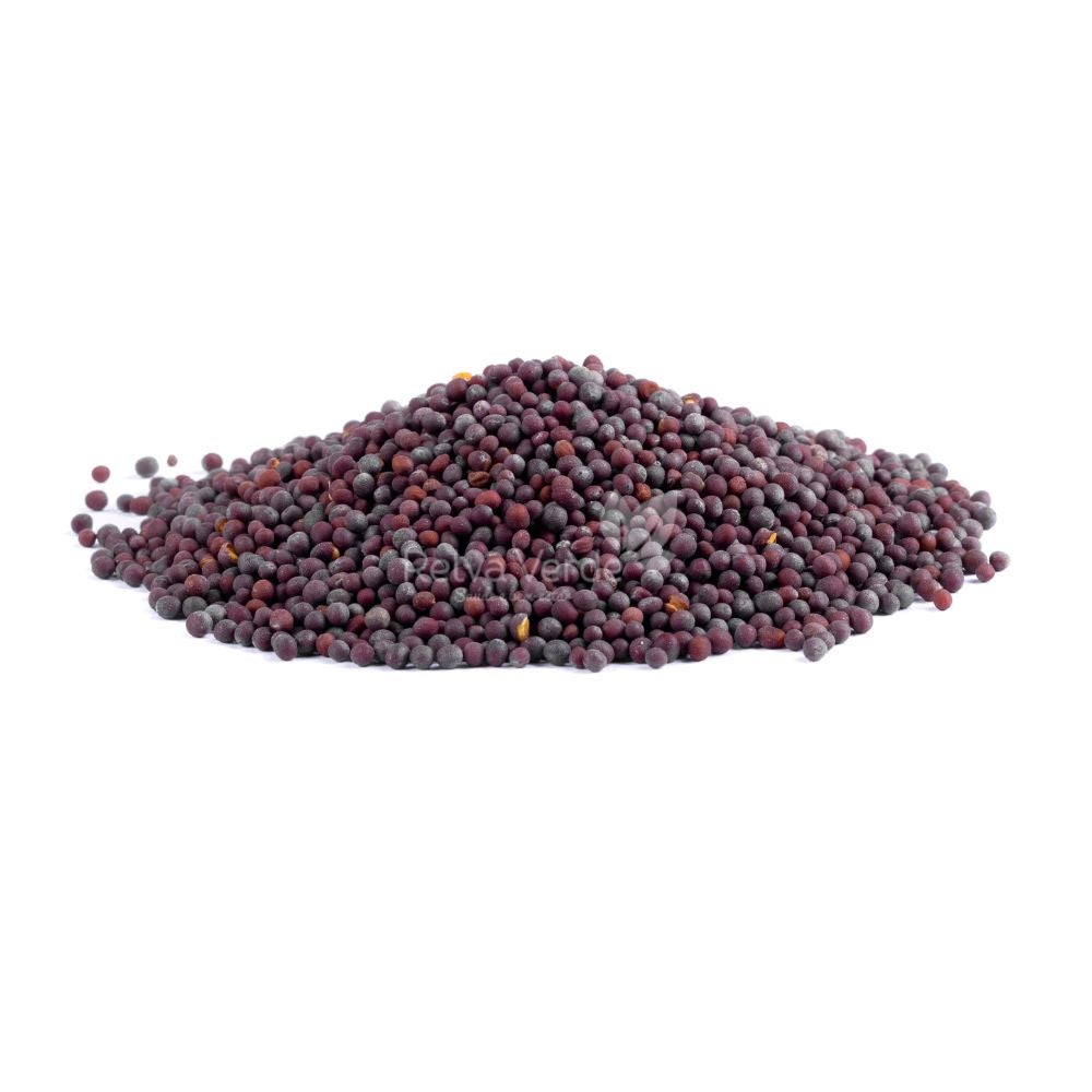 Mostarda escura em grãos.