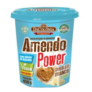A Amendo Power, é a pasta de amendoim da DaColônia, feita com amendoim com certificação PróAmendoim (que são empresas que passaram por uma auditoria para garantir a qualidade da matéria-prima). É um produto vegano, com zero lácteos e sem adição de açúcares.