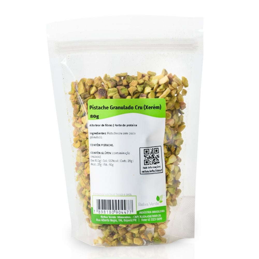 O pistache cru granulado pode ser utilizado em coberturas, recheios e massas de bolos, tortas, doces, sobremesas, sorvetes, granolas, chocolates, cremes, pestos, farofas e empanamentos. A opção granulada é ideal para finalização e decoração dos pratos.