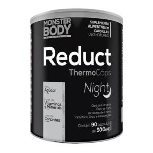 O Reduct ThermoCáps Night é feito com Óleo de Cártamo, óleo de coco, picolinato de cromo, triptofano, zinco e associações. Zero Açúcar. Fonte de Vitaminas e Minerais. Livre de Corantes.