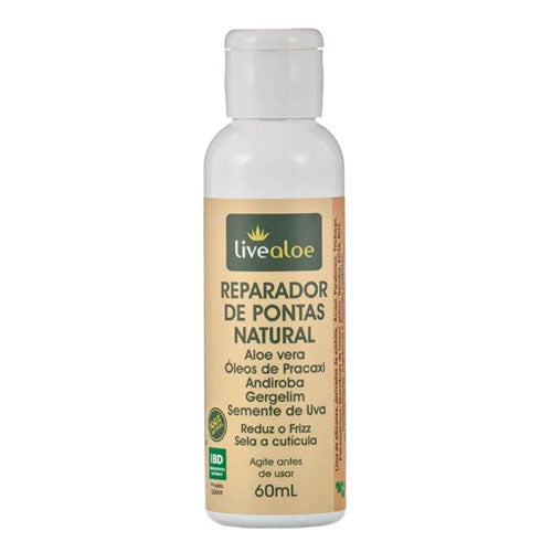 O Reparador de Pontas Natural da Livealoe é vegano, feito de ingredientes naturais como óleos de pracaxi, andiroba, gergelim, semente de uva e aloe vera! Reduz o frizz e sela a cutícula.