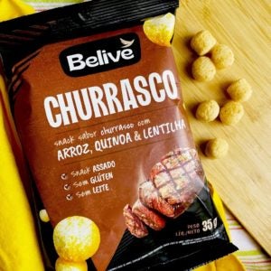 O Snack Multigrãos da Belive é feito com um mix de farinha de arroz, lentilha e quinoa, e é assado! Não possui glúten, não possui nada de leite, portanto sem lactose, nada de aromas e corantes artificiais e sem transgênicos. Uma opção de salgadinho saudável para comer entre as refeições, no lanche da tarde, para levar na lancheira, num piquenique, na hora do cinema e em outros momentos do dia. Essa é a opção sabor Churrasco!