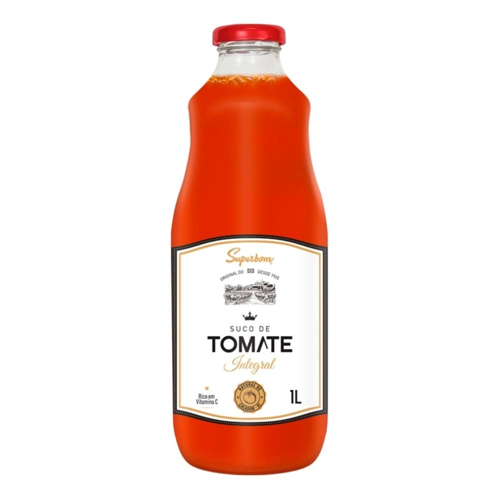 O Suco de Tomate é feito com tomate e uma pitada de sal! Feito pela Superbom, o Suco de Tomate é naturalmente rico em licopeno, vitamina C e antioxidantes. Em garrafa de vidro de 1 litro, ideal para compartilhar com a família e amigos.