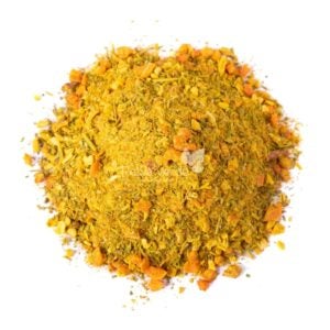 Amido de milho, aroma idêntico ao natural de costela, cebola, cebolinha, pimentão vermelho, pimentão verde, cenoura flocos, cúrcuma e salsa.
