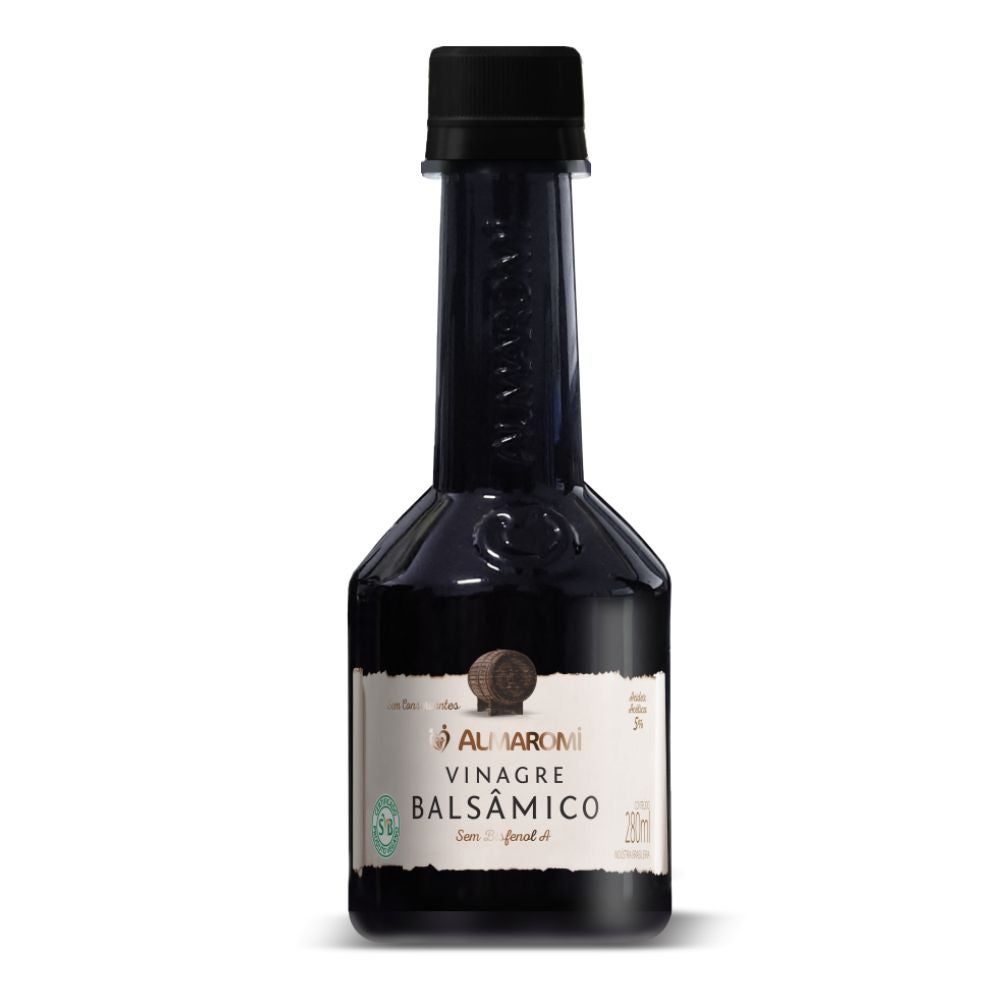 O Vinagre Balsâmico da Almaromi é 100% natural, possui acidez acética de 5%, sem bisfenol-A, feito com vinho tinto e extrato de carvalho. O Vinagre Balsâmico é muito versátil na cozinha, é um delicioso ingrediente para molhos de saladas, marinadas de carnes, reduções de molhos e na finalização de pratos.
