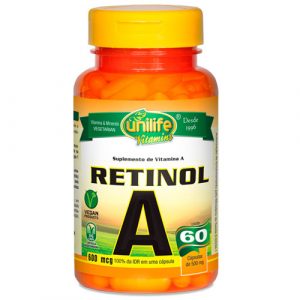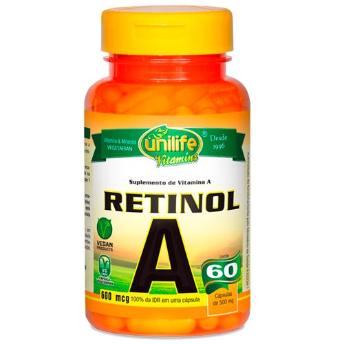 A Vitamina A (Retinol) da Unilife fornece 8000 UI por cápsula e costuma ser utilizada por quem busca complementar a ingestão dessa vitamina no dia a dia. Ela é conhecida por auxiliar na boa saúde da visão, da pele e das proteções naturais do organismo. Cada frasco contém 60 cápsulas, em formato prático para incluir na rotina. Apenas 1 cápsula por dia!